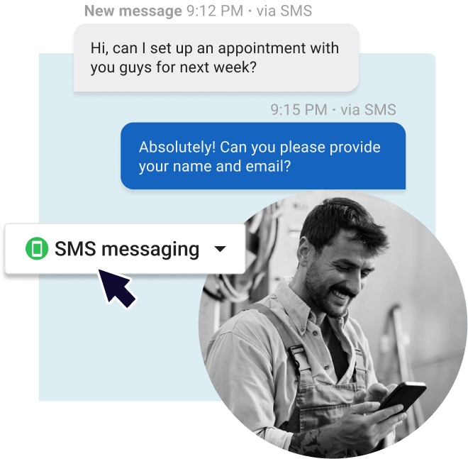 Engage with leads by SMS text message and email from one central place, whether they come from Facebook, Instagram, Web Chat, or your website contact forms.