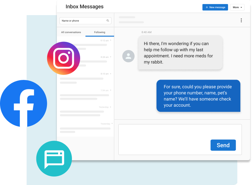 Automatically import contacts from your business system and consolidate leads from Facebook, Instagram, Web Chat, and website contact forms into one shared inbox.